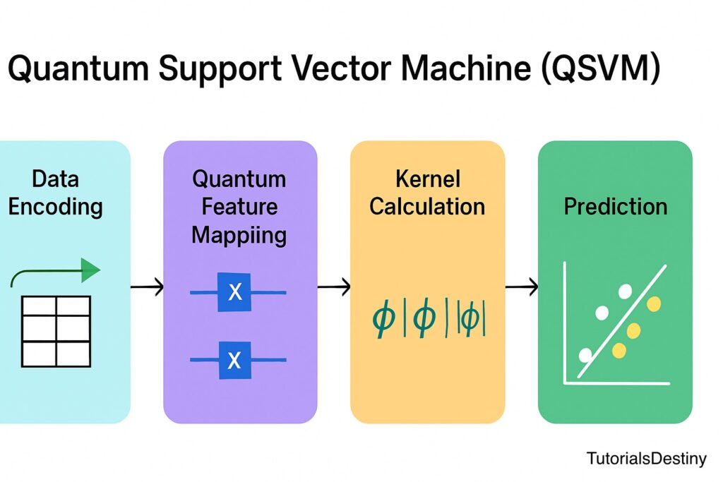 - High-dimensional mapping: Quantum computers can map classical data into extremely high-dimensional spaces efficiently using quantum kernels.